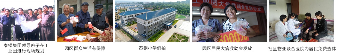 為解決周邊群眾的致富問題,2003年,泰山鋼鐵提出了“以工帶農,以工扶農,以工哺農,以工富農”,帶領周邊10個行政村走工農一體協調發展的道路,得到當時萊蕪市委市政府的支持。工業園成立后,通過實施項目進村、勞力進廠、保障進家,泰山鋼鐵解決了園區1.5萬人的就業和養老問題。籌資1.2億為工業園群眾建設呈瑞社區、同心家園;投資8000余萬元建設開放式雅鹿山公園;拿出專項資金對園區內的6處中小學進行修繕和重建,建設了現代化、高標準的汶水中學,大大改善了師生工作學習環境。園區群眾實現了老有所養、壯有所為、幼有所教、困有所幫、病有所醫的目標。初步實現了村莊公司化、村民職工化、保障規范化、居住社區化。