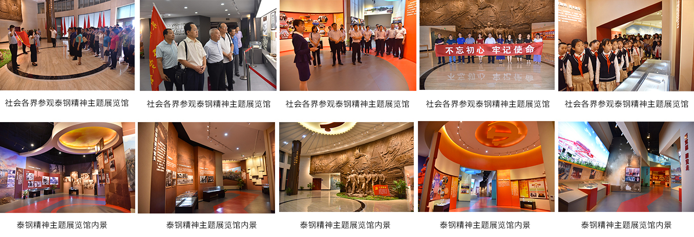 2018年,泰山鋼鐵高起點規劃、高標準建設了泰鋼精神主題展覽館,展示了泰山鋼鐵用黨建引領企業發展的奮斗歷程,與時俱進、改革創新、艱苦奮斗、擔當奉獻的精神。建成以來,相關政府機關及社會團體紛紛前來開展主題黨日活動,成為傳承紅色基因、汲取信仰力量、淬煉堅強黨性的學校,被授予“山東省直機關黨性教育基地”。特別是在全國上下開展“不忘初心、牢記使命”主題教育活動期間,展館連續接待180余場次、2.2萬多人前來參觀學習,前來參觀學習的黨員群眾紛紛表示深受教育,很有收獲,既堅定信仰又激發干勁。